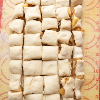 5) Roll the dough out about ¼ inch thick and add the cooled apple filling to the middle.